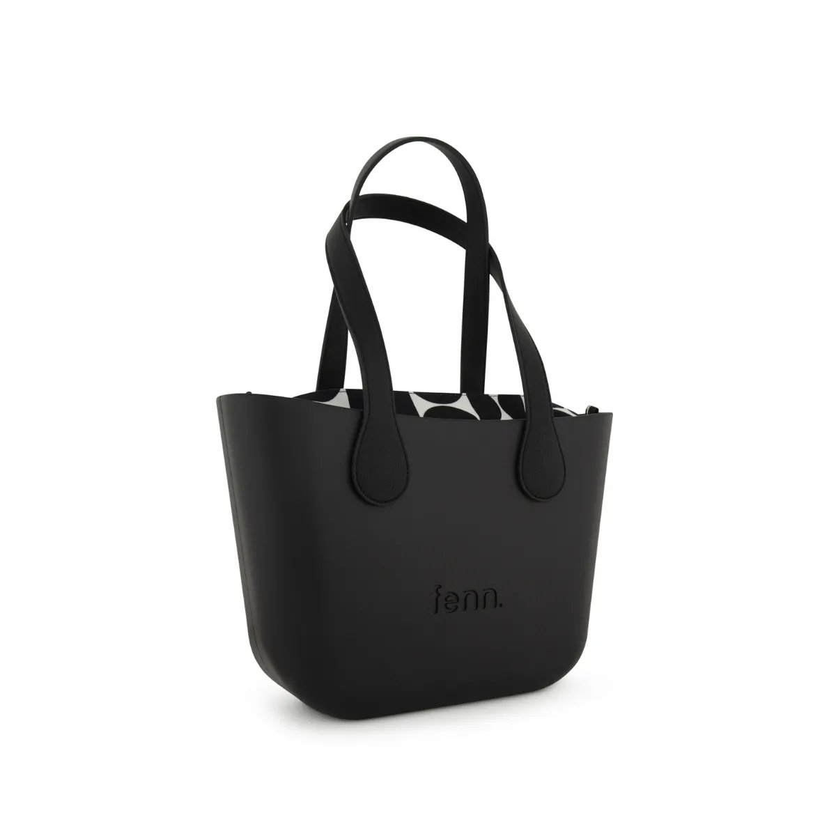 The Petite Fenn is a compact yet versatile tote bag, perfect for carrying essential items for any occasion, featuring a Scandinavian-inspired design with a vinyl exterior and removable canvas-lined interior.