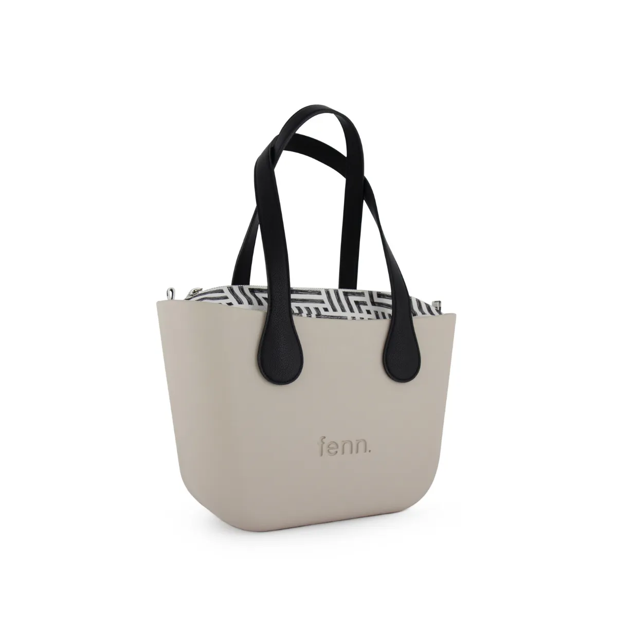 The Petite Fenn is a compact yet versatile tote bag, perfect for carrying essential items for any occasion, featuring a Scandinavian-inspired design with a vinyl exterior and removable canvas-lined interior.