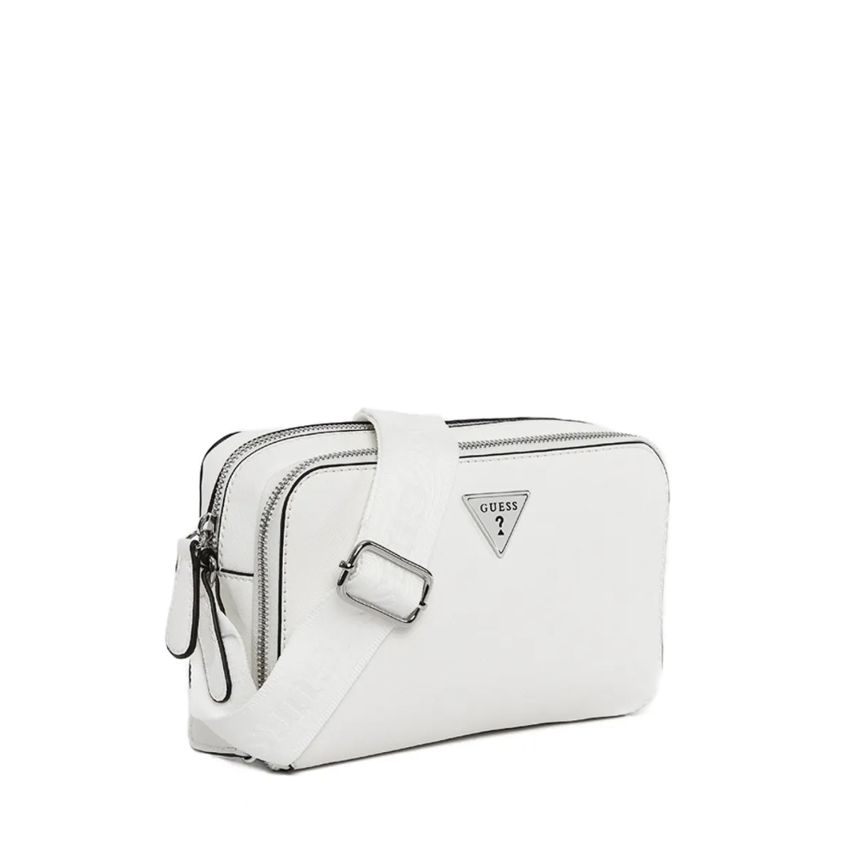 Genuine Guess crossbody with double zip compartments—efficient, stylish, and surprisingly roomy